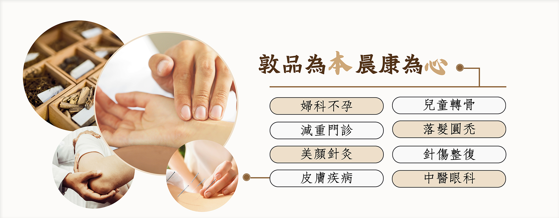 針對現代人重視的體態與健康,晨康與敦品中醫提供專業的中醫減重門診。透過醫師精準的體質辨證,結合埋線技術與中藥調理,協助患者從根本改善代謝、健康減脂。同時,晨康與敦品中醫在婦科和兒科均提供深度的專科諮詢。其中不孕調理是許多夫妻重視的課題,醫師建議患者透過中藥與針灸,提供備孕期間的日常調理建議;而在孩童成長階段,中醫兒科能針對不同體質提供轉骨的專業建議。此外,針對現代人長時間用眼疲勞與對面容的重視,診所亦提供中醫眼科針灸舒緩與美顏針拉提療程,結合皮膚科調理,全方位照護您的外在自信與內在健康。晨康與敦品堅持陪伴台南眾多家庭度過各個人生階段。