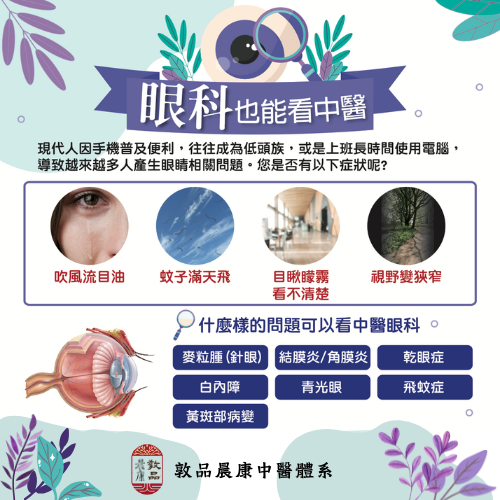 很多人不知道,原來中醫也能看眼科,中醫眼科是一個非常有特色且歷史悠久的領域。與西醫將眼睛視為獨立器官不同,中醫認為**「眼睛與臟腑經絡息息相關」**,透過臟腑經絡的調理,可以治療許多眼科疾病。