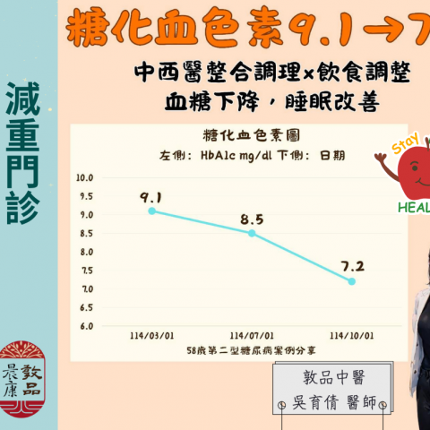 敦品中醫 吳育倩醫師 糖尿病案例 58歲S先生本身是第二型糖尿病患者服用西藥控制中。年關將近工作忙碌沒辦法正常時間吃飯,僅以飲料果腹補充能量。最近半夜會因為口乾舌燥醒來沒辦法睡,回西醫診所檢查血糖發現糖化血...