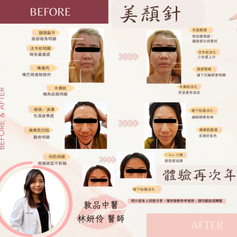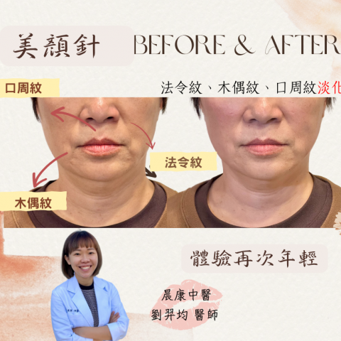 晨康中醫 劉羿均醫師 美顏針案例 很多人問劉醫師美顏針要針幾次才會有效果呢?其實針一次就可以看見細微紋路的變化喔!但想要有更好的療效還是需要次數的累積的。 今天跟大家分享美顏針的驚人效果! 案例為50歲...